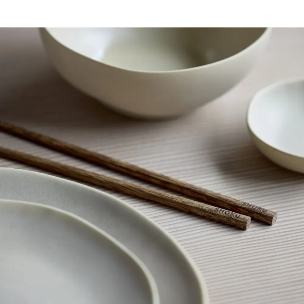 Shoku-stellet forener japansk minimalisme med skandinavisk enkelhed. Med sine organiske former og dæmpede farver skaber Shoku en harmonisk og rolig atmosfære omkring bordet. Stellets dele er designet med rene linjer og silkeblød, mat og blank glasur, der understreger en naturlig æstetik og løfter måltidets visuelle og kulinariske oplevelse. Shoku betyder mad eller spise på japansk og symboliserer glæden ved både maden og samværet omkring bordet. Med sine holdbare materialer og tidløse design er Shoku-stellet det ideelle valg til både daglig brug og særlige anledninger, hvor skønhed og funktionalitet mødes.