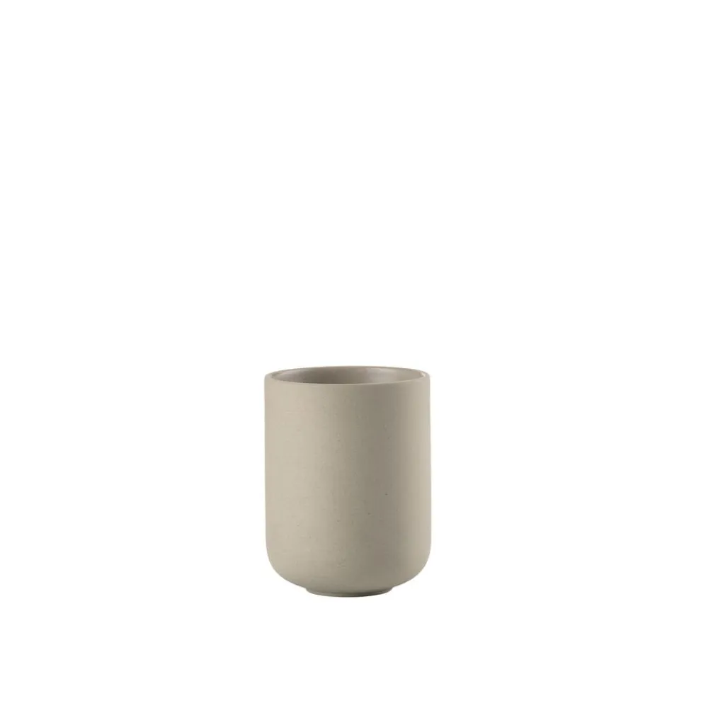 Ved vasken finder du en sød cylinderformet sæbedispenser med et fint lille pumpehoved. Den matcher det klassiske tandbørstekrus, der, ligesom seriens øvrige designs, er udført i stentøj. Takket være stentøjets tyngde og den runde bund står tandbørstekruset sikkert på bordet. Køb evt. flere og brug et af dem til make-up-børster, barbergrej eller andre hverdagsfavoritter, der skal være inden for rækkevidde.