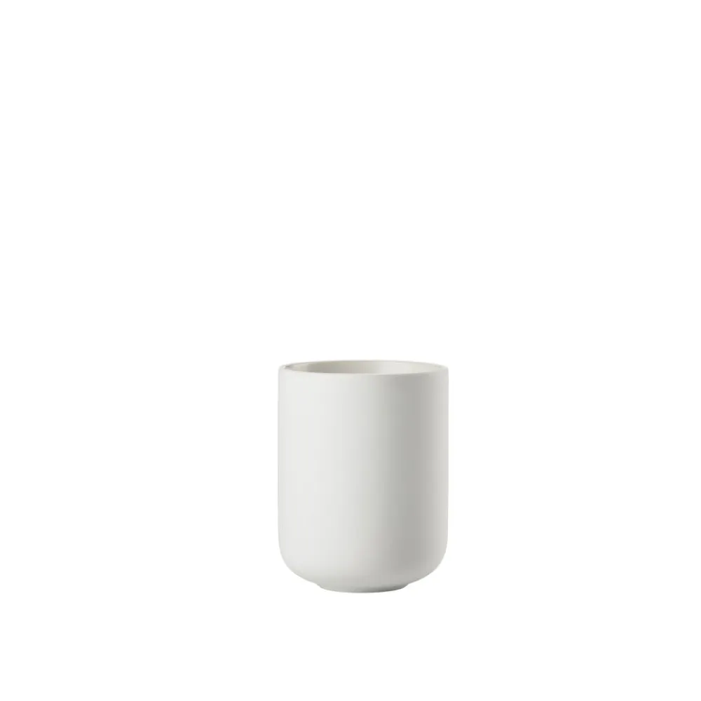 Ved vasken finder du en sød cylinderformet sæbedispenser med et fint lille pumpehoved. Den matcher det klassiske tandbørstekrus, der, ligesom seriens øvrige designs, er udført i stentøj. Takket være stentøjets tyngde og den runde bund står tandbørstekruset sikkert på bordet. Køb evt. flere og brug et af dem til make-up-børster, barbergrej eller andre hverdagsfavoritter, der skal være inden for rækkevidde.