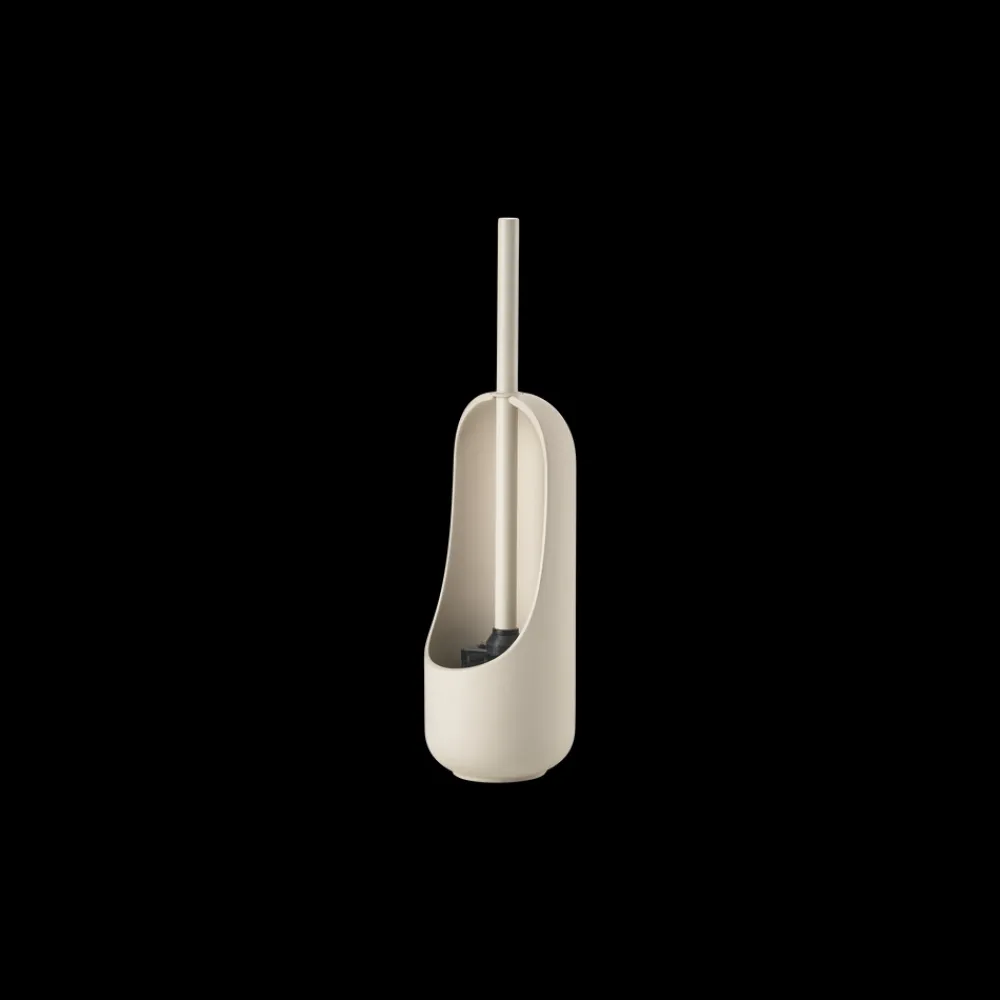 Toiletbørsten er en nyfortolkning af de traditionelle varianter på markedet. Takket være en åben bagside, kan du afhængig af vinkel selv vælge, om børsten skal skjules bagpå eller vendes udad. Trods det lette udtryk står toiletbørsten stabilt på gulvet. Grebet er godt, og det er nemt at rense kummen.