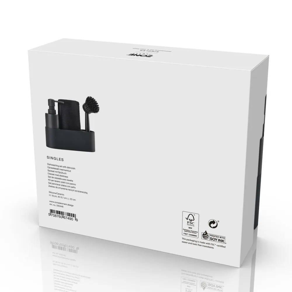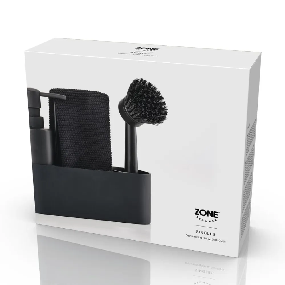 I vores Singles-univers finder du et kompakt alt-i-ét opvaskesæt, inkl. karklud, med elegante former. Rund og blød at se på og røre ved – bygget op omkring en silikonebeholder med plads til sæbedispenser i den ene ende og opvaskebørste i den anden.