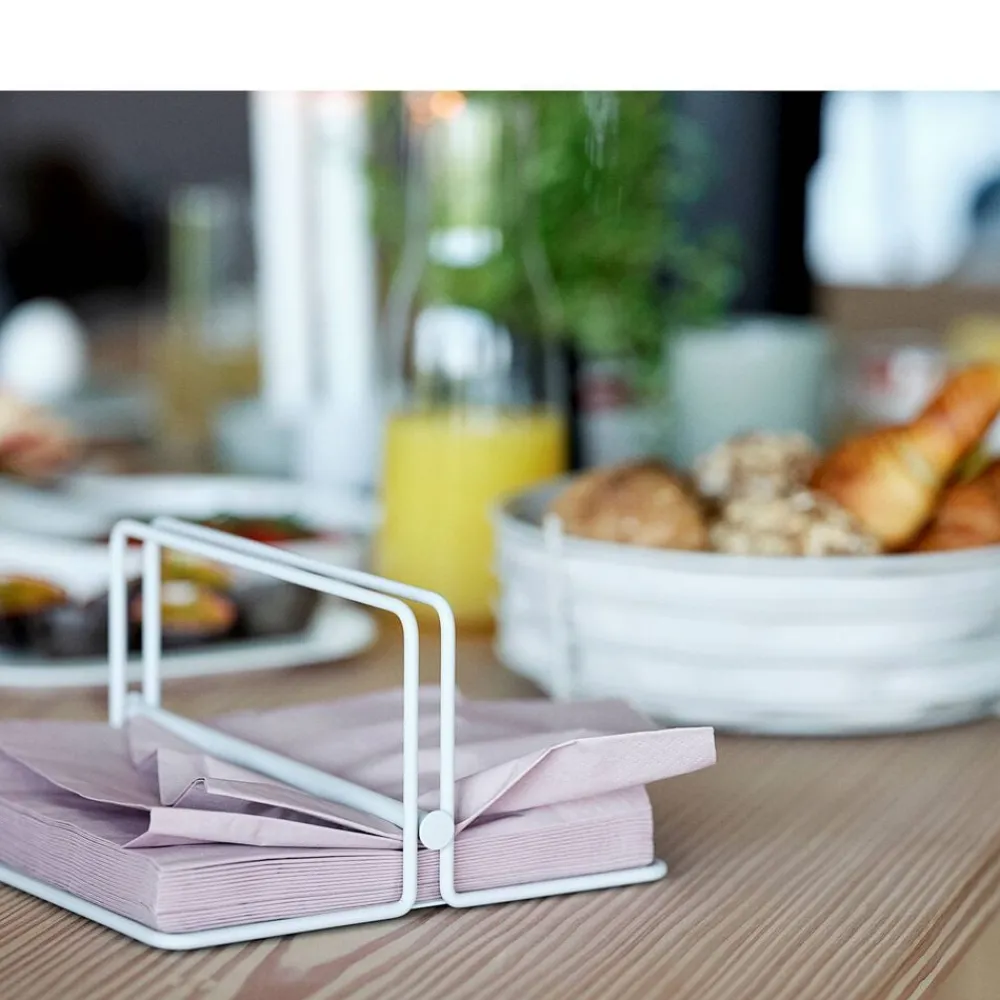 Den enkle servietholder fra Singles er forsynet med en lille genial detalje i silikone, der sørger for, at du kun trækker én serviet ad gangen. Det er god stil, og så tilpasser den sig pænt servietter i mange størrelser.