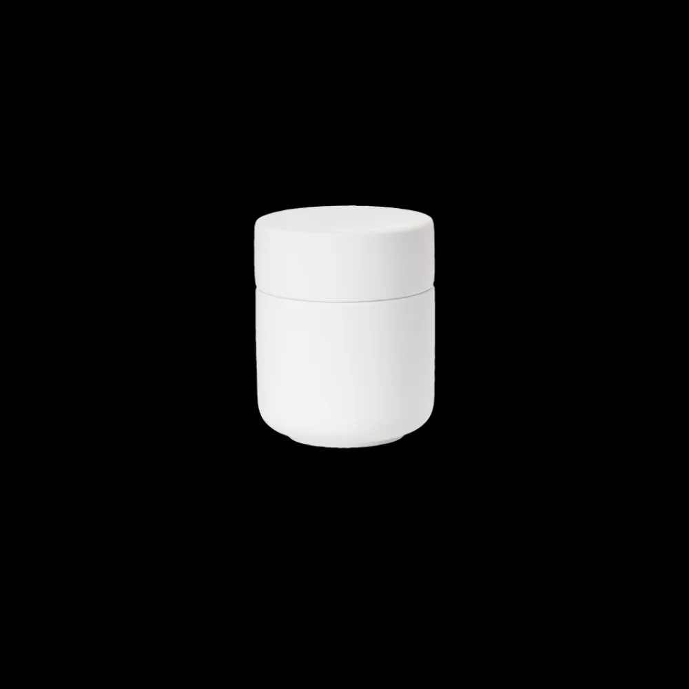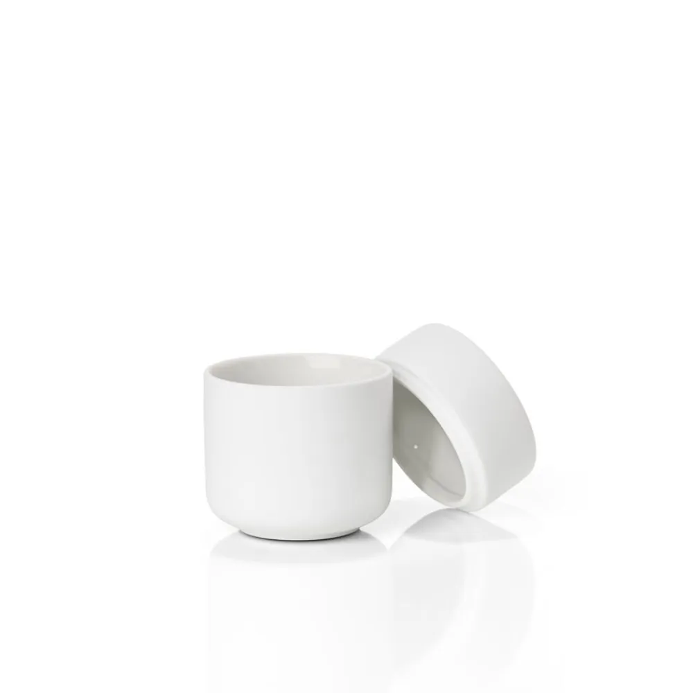 Keramikkrukken med låg har samme enkle, organiske formsprog som resten af den skønne badserie Ume. Den kan rumme dine hårspænder, makeup, vatpinde, vatrondeller eller hvad du ellers har behov for at ha’ ved hånden, men ikke nødvendigvis i syne, på badeværelset.