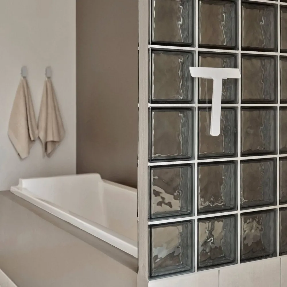 Takket være sit brede greb ligger skraberen godt i hånden. Silikoneoverfladen gør den rar at røre ved og behagelig at trække hen over en fugtig flisevæg. Enden af hovedet er skåret skråt, hvilket gør skraberen enormt effektiv. Formsproget er en forlængelse af de velkendte brede og organiske streger, som UME-serien er kendt og elsket for.